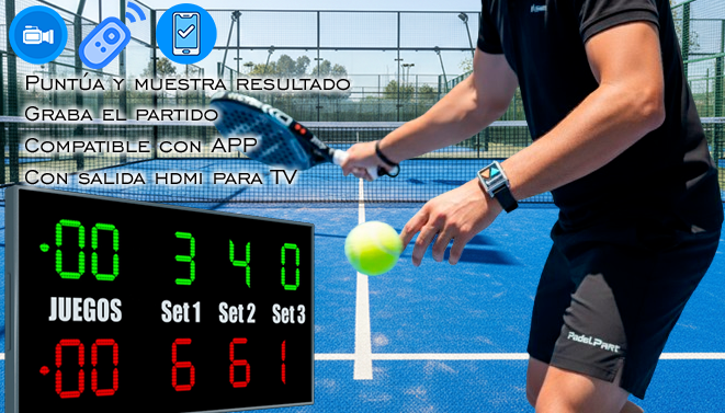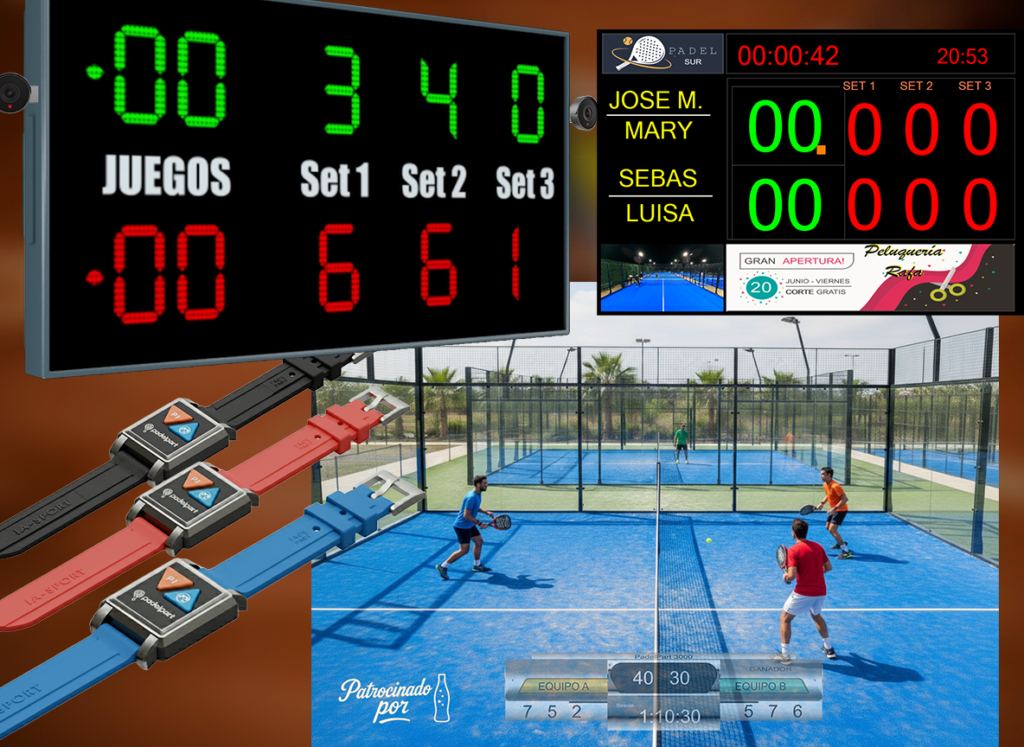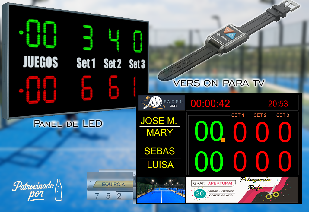 Resultados en un panel luminoso LED o pantalla de TV para que todos sigan el partido.