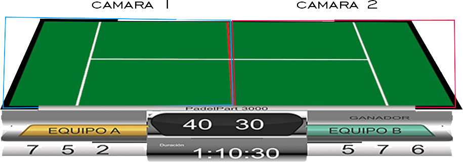 Tenemos dos botones, 1 y 2, en cada Peloteo o Rally pulsamos sobre el ganador y el marcador se actualizará.